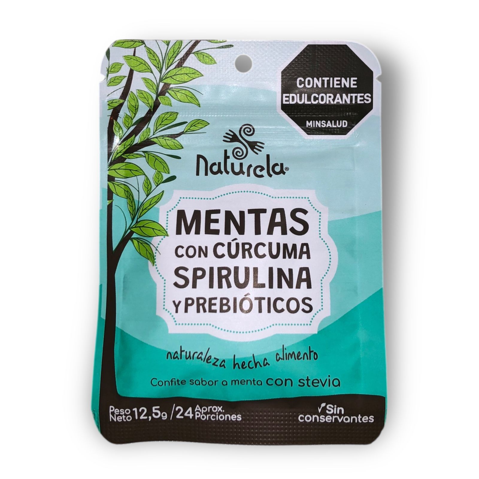 Naturela Mentas Con Stevia, Cúrcuma, Spirulina y Prebióticos 12.5g